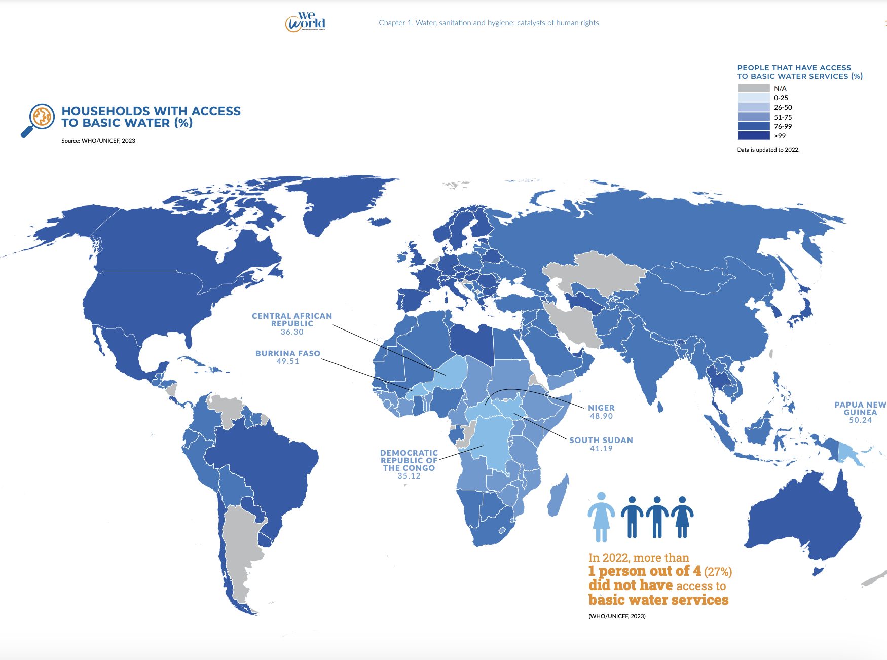 Non avere accesso ad una risorsa vitale come l’acqua porta, inevitabilmente, a ripercussioni e conseguenze per i diritti umani. Ma vediamo alcune evidenze dall’Atlante di WeWord onlus.