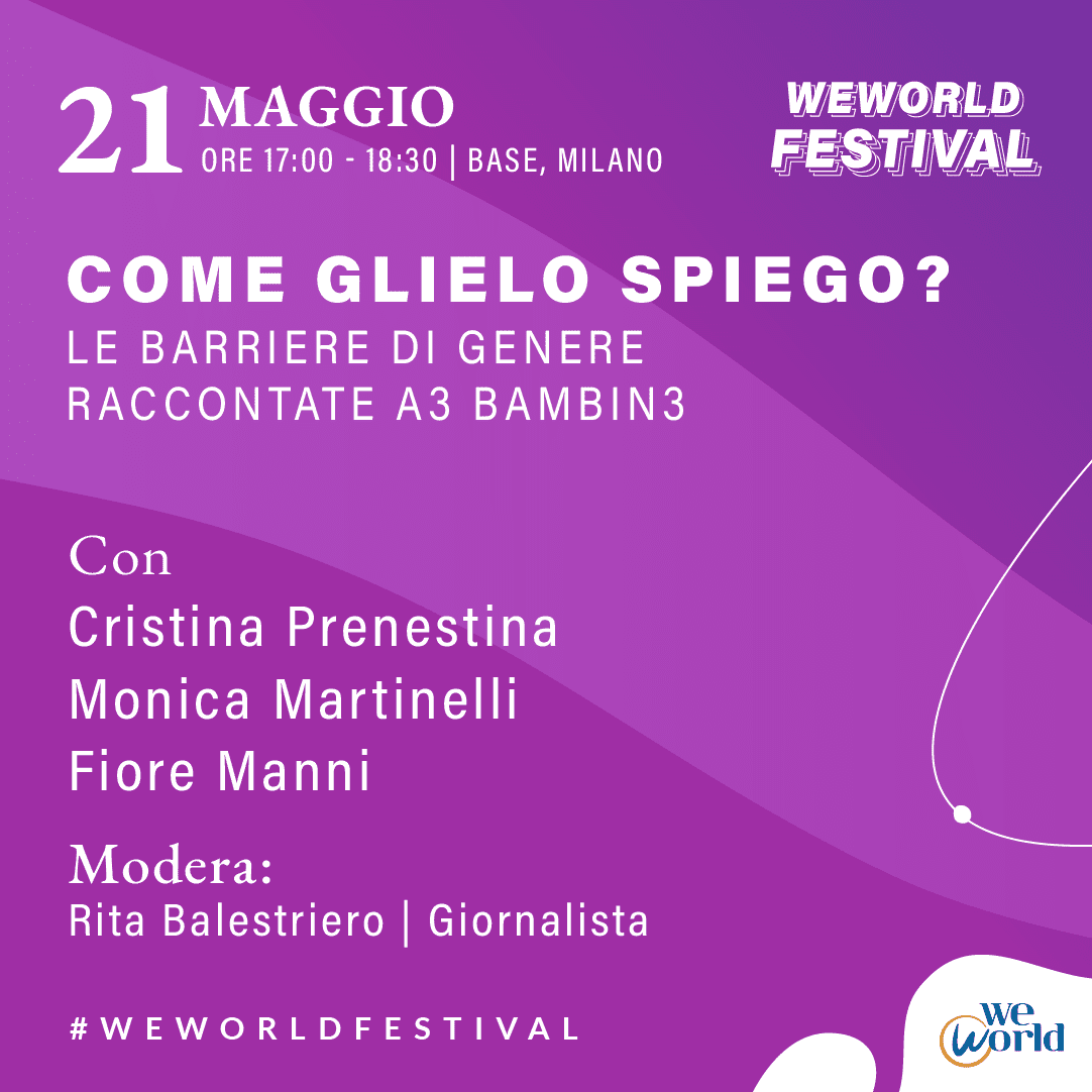 Torna anche quest’anno il WeWorld Festival, l’evento sulla condizione delle donne in Italia e nel mondo organizzato da WeWorld, organizzazione italiana indipendente impegnata da 50 anni a garantire i diritti di donne, bambine e bambini in 25 Paesi per la quale seguiamo l’ufficio stampa.