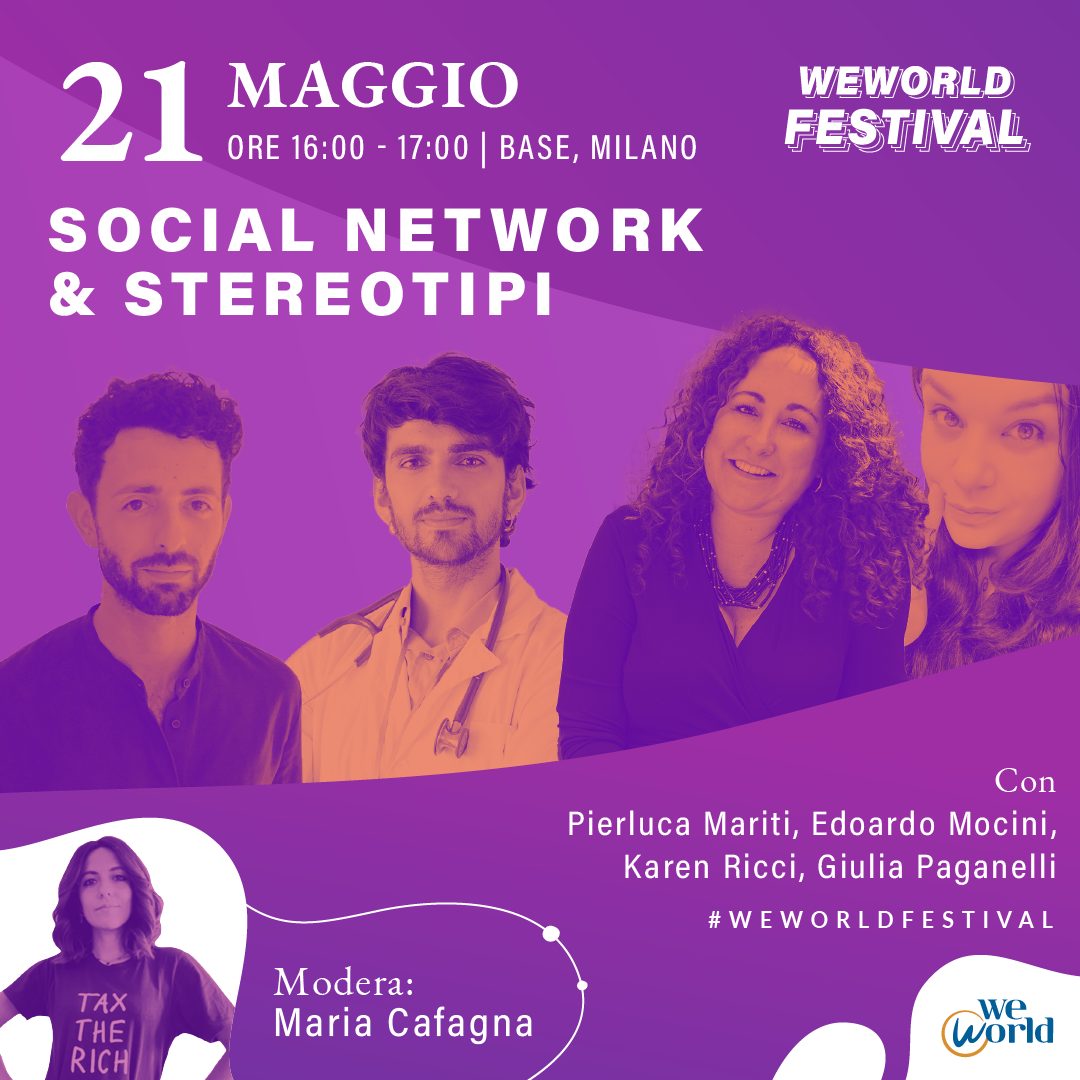 “Social network e stereotipi – Una storia di amore e odio” La riflessione sulle barriere di genere non poteva prescindere dai grandi protagonisti del nostro tempo, i social network. Ne parlano insieme: Pierluca Mariti (IG: “piuttosto_che”), il medico e divilgatore scientifico Edoardo Mocini, fondatore di “Medicina inclusiva”, l’antropologa e divulgatrice Giulia Paganelli (“Eva Stai Zitta”), l’influencer Karen Ricci, moderat3 da Maria Cafagna, consulente politica e autrice TV.